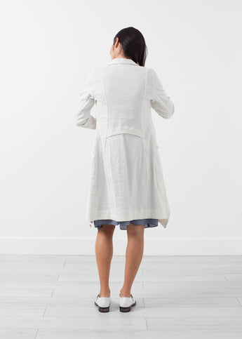 This knee length coat is a fantastic choice for  spring outwear. Button placket closure at front. Two exterior pockets at sides. Lilith. Color Ivory. 64% Linen, 32% Cotton, 4% Spandex, Trimmings 67% Cotton, 33% Polyester. Ashley is wearing an X-Small.